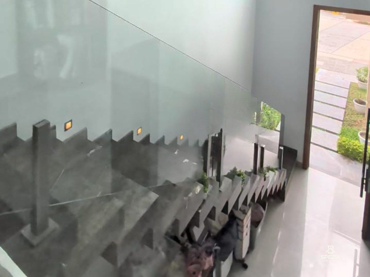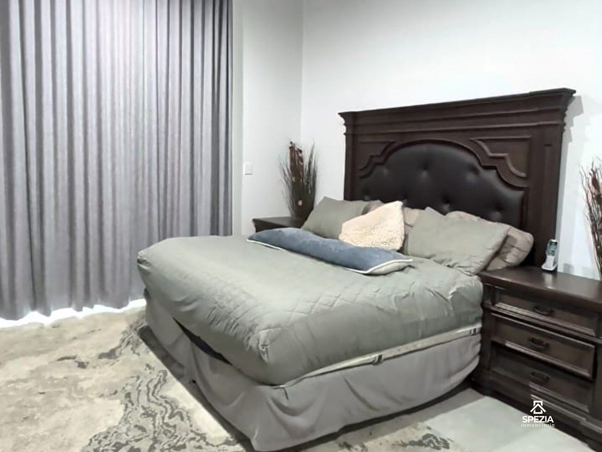 Cuenta con amplios espacios de sala y comedor, cocina equipada, 4 recámaras (una en planta baja) y 4 baños completos. La recámara principal incluye vestidor, baño y balcón privado, mientras que las secundarias ofrecen baño propio para mayor privacidad.